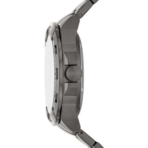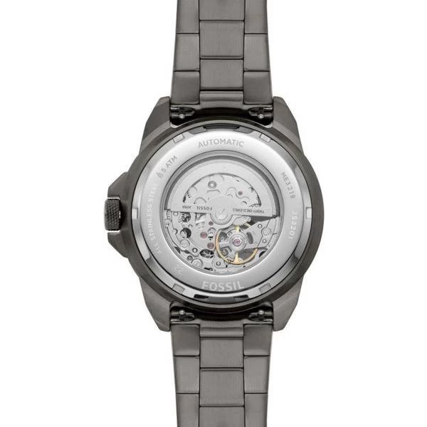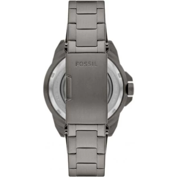 A watch for men from Fossil which is self-winding, so it eliminates any need for batteries and takes care of itself. The case is 14 mm thick and the watch face is 44 mm in diameter. The grey strap is made from stainless steel. This watch should survive getting wet, since it is water protected up to 5 ATM (50m).