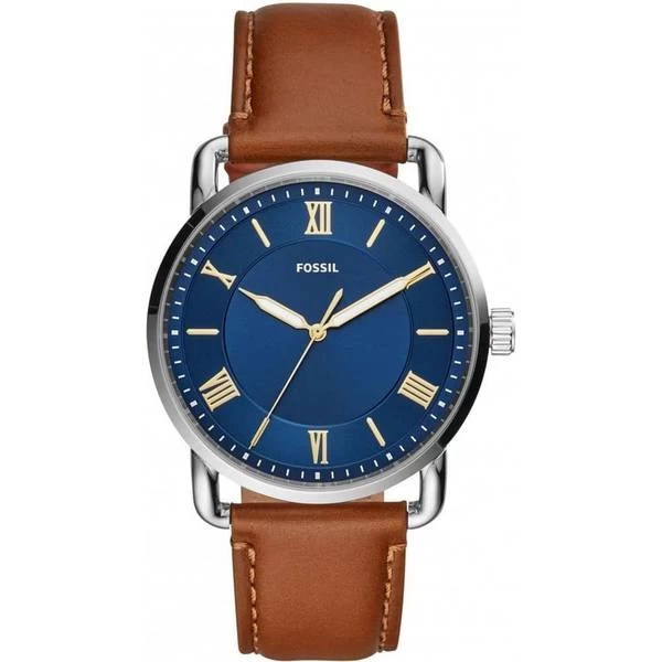 A men’s watch from Fossil which runs on batteries and is easy to maintain. You just need to swap the batteries when they run out. This watch should survive getting wet, since it is water protected up to 5 atm (50m). The brown strap is made from leather. The 42 mm watch face , has analogue hands and is nine millimetres thick with a stainless steel case.