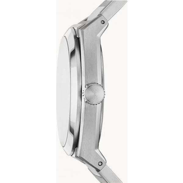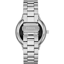 from Fossil which runs on batteries and is easy to maintain. You just need to swap the batteries when they run out. This watch should survive getting wet, since it is water protected up to 5 ATM (50m). The silver strap is made from stainless steel. A nice case and elegant watch face with matching hands.