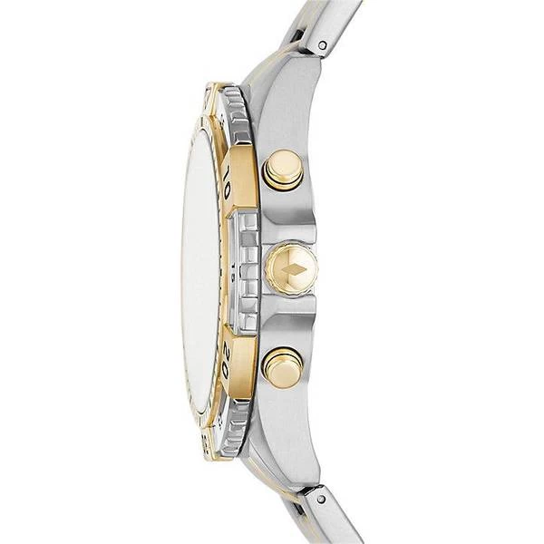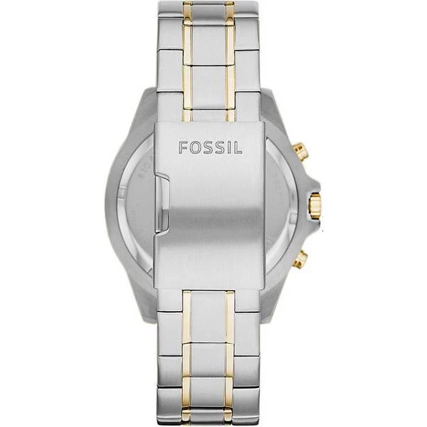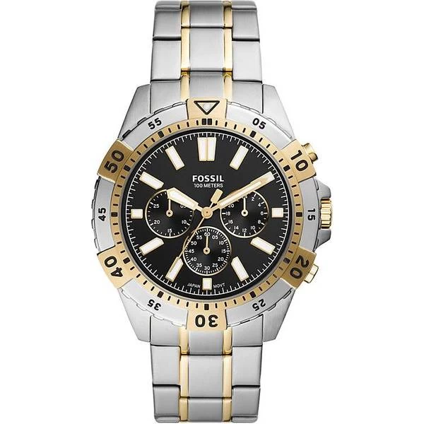 A watch for men from Fossil which runs on batteries, so you just need to change batteries if the watch stops. The 44 mm wide watch face has analogue hands and is 12 millimetres thick with a stainless steel case. The strap is made from stainless steel. This watch should survive getting wet, since it is water protected up to 10 atm (100m).