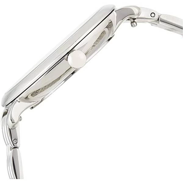 This Jacqueline (ES3433) has a stainless steel case, so if you’re looking for something that will last you a long time, then this might be it. Stainless steel is a material consisting of a mix of iron, carbon and at least 10,5% chrome. That mixture makes the material very resistant to corrosion, rust and other chemical reactions. In other words, the case will handle moisture very well without getting damaged.