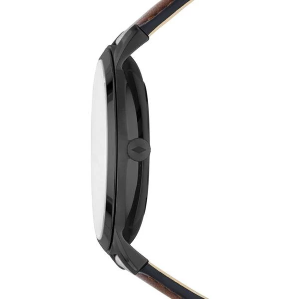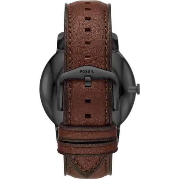 A watch for men from Fossil which runs on batteries. Just swap them out if the watch stops. The watch face has a nice brown colour with nicely matching hands. The brown strap is made from leather and is 22 mm wide. Swimming with this watch should be fine based on its 5 ATM (50m) water protection.