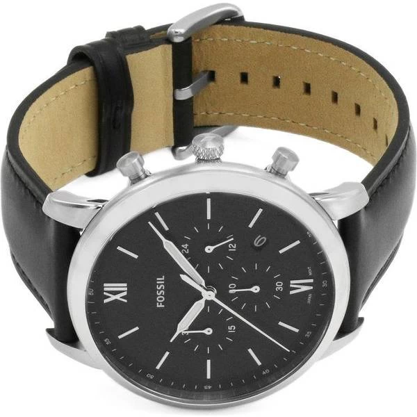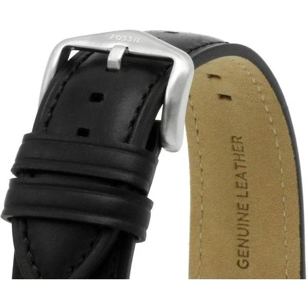 A watch for men from Fossil which runs on batteries and is easy to maintain. You just need to swap the batteries when they run out. The 44 mm watch face , has analogue hands and is 12 millimetres thick with a stainless steel case. The black strap is made from leather. Swimming with this watch should be fine based on its 5 atm (50m) water protection.