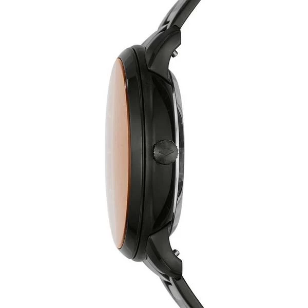 A watch for men from Fossil that automatically winds itself up when you move your wrist. This eliminates any need for batteries. The black watch face complements the hands perfectly. The black strap is made from stainless steel. This watch should survive getting wet, since it is water protected up to 5 atm (50m).