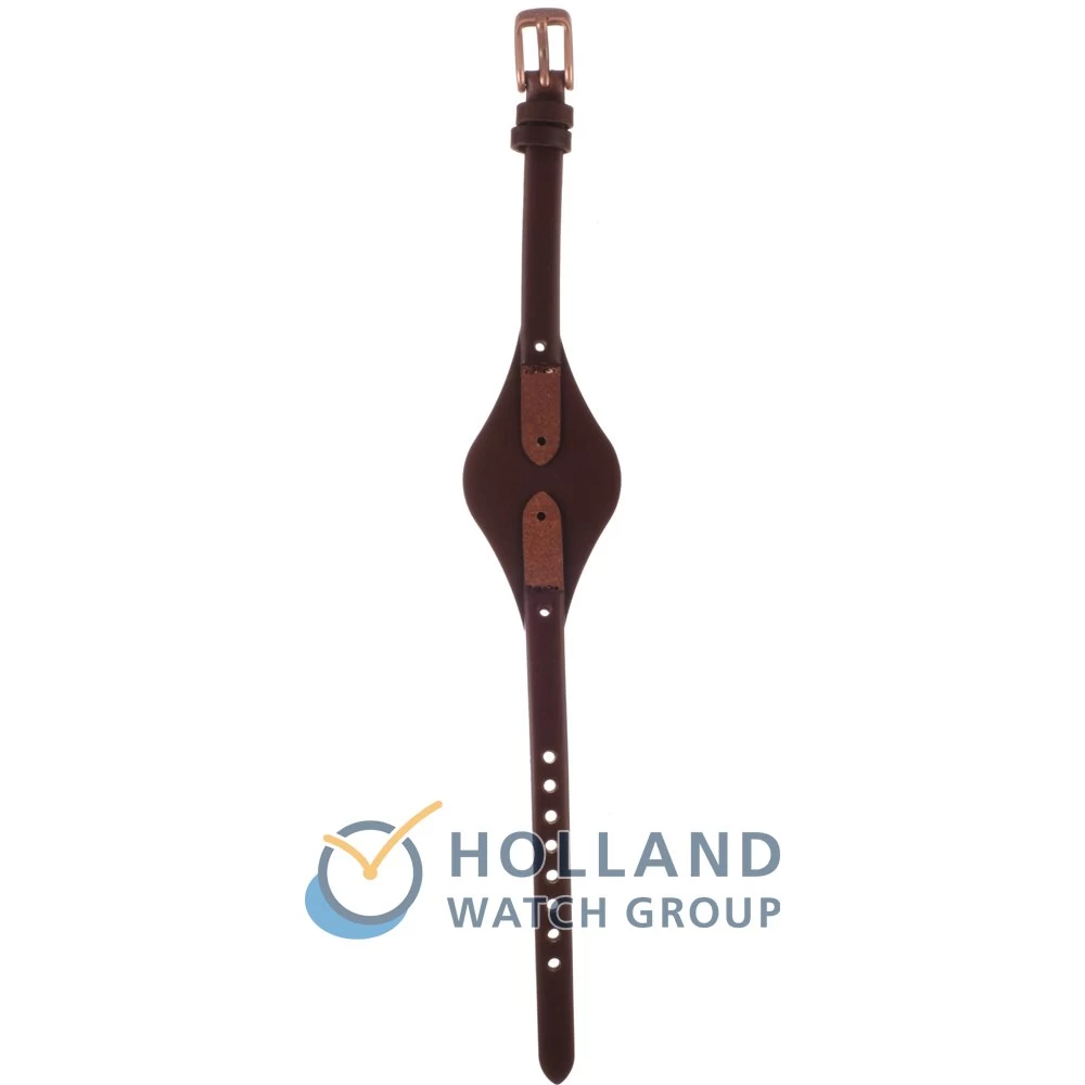 This Fossil watch strap is made of leather and is attached to the watch by means of screws. The band has a width of 8 mm and is closed by means of a buckle. The strap has no straight mount which means that this strap is only suitable for the watches listed below.